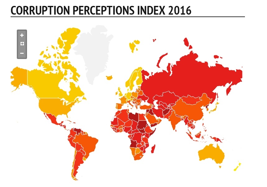 Según la ONG Transparencia Internacional, que ha presentado su ranking en el que suspende al 70% de los 176 países analizados. Según el Índice de Percepción de la Corrupción, Somalia, Sudán del Sur y Corea del Norte son los países más corruptos del mundo. En el otro extremo de la clasificación se sitúan Nueva Zelanda, Dinamarca y Finlandia. Según el estudio, la corrupción sistémica y la desigualdad económica y social forman un círculo vicioso que provoca decepción hacia la clase política y abona el terreno para el auge de los políticos populistas. Cita como ejemplos al nuevo presidente de EE.UU., Donald Trump, al presidente turco, Recep Tayyip Erdogan, y al primer ministro húngaro, Viktor Orban.