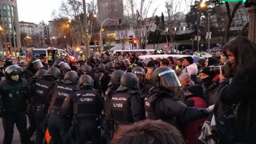 Agentes de Unidades de Intervención Policial (UIP) han comenzado formación para que los taxistas retrocedan a la altura de la glorieta de Gregorio Marañón hacia Colón, algunos taxistas han comenzado a retirar su vehículos que bloquean los laterales de la Castellana, aunque la ocupación seguía en los carriles centrales.