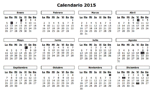 El calendario laboral de 2015 establece un total de ocho fiestas nacionales comunes en todas las comunidades autónomas, una menos que en 2014. Sólo tres de ellas se celebrarán entre semana, según la resolución de la Dirección General de Empleo publicada este viernes en el Boletín Oficial del Estado.